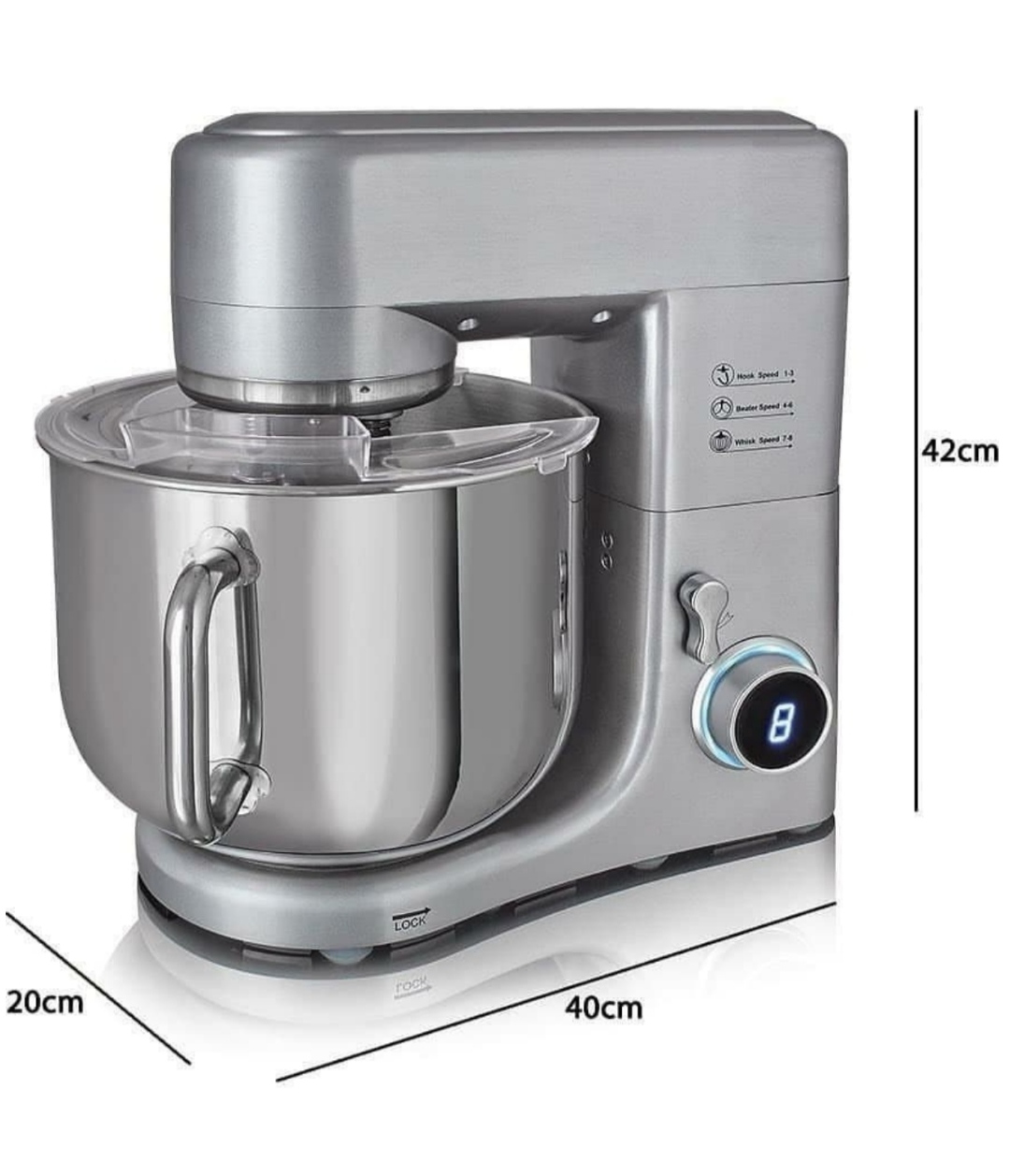 توان مصرفی : 1800 وات ظرفیت کاسه : 12 لیتر گیربکس : تمام فلزی قابلیت اتصال همزمان دو خمیرزن : دارد جنس خمیرزن و لیسک ها : آلومینیوم دای کست تنظیمات سرعت : 6 سرعته عملکردها : همزن ، خامه زن ، ورزن ، خمیر زن