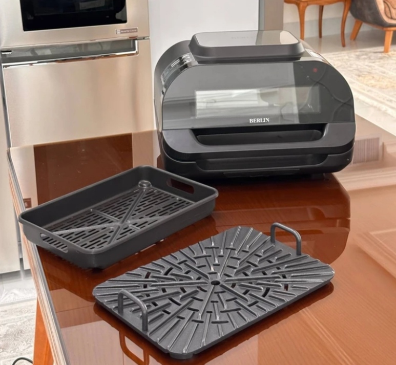 برنامه های پخت : برنامههای پخت 1. سرخ کردن (AIR FRY) 2. گریل کردن 3. خشک کردن میوه و سبزی (Dehydrate) 4. بریان کردن (Roast) 5. پختن (Bake) 6. گرم کردن مجدد 7. دیفراست (Defrost)